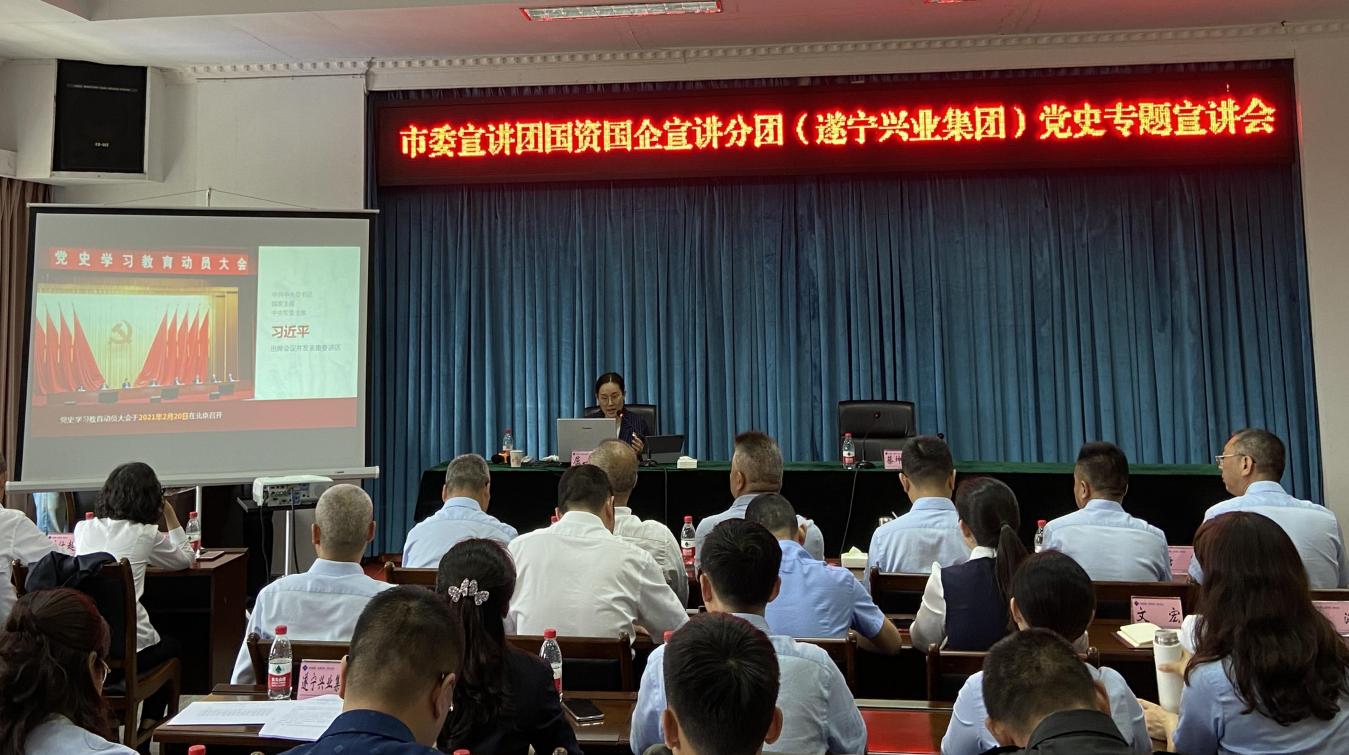 ? ? 5月11日,市委宣講團第十分團成員、市委黨校教研室主任屈燕走進遂寧興業(yè)集團,開展黨史學習教育專題宣講。集團公司及各直屬企業(yè)領(lǐng)導(dǎo)班子成員、中層干部,以及黨員和基層員工代表聆聽了宣講。集團公司黨委委員、紀委書記蔡坤辰主持宣講會并對下一階段黨史學習教育提出要求。