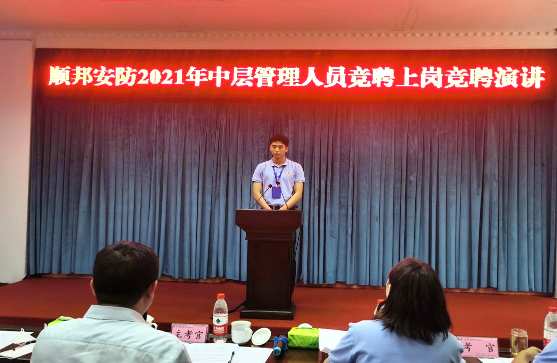 ? ? 為推進后備人才培養(yǎng)發(fā)展戰(zhàn)略,營造比學趕超奮發(fā)向上的良好競爭氛圍,激勵員工愛崗敬業(yè)、開拓進取,促進企業(yè)高質量轉型升級發(fā)展,8月24日,在市國資委黨委委員、二級調(diào)研員陳海軍,遂寧興業(yè)集團黨委副書記、監(jiān)事會主席石鎮(zhèn)槐,集團人力資源部的監(jiān)督指導下,順邦安防公司辦公室、督訓部、市場部中層管理副職崗位競聘上崗正式拉開帷幕。